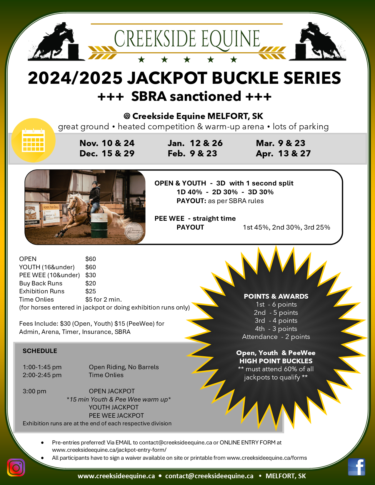 Clinics, Shows, Roping Jackpots, Barrel Races, or any other events!
